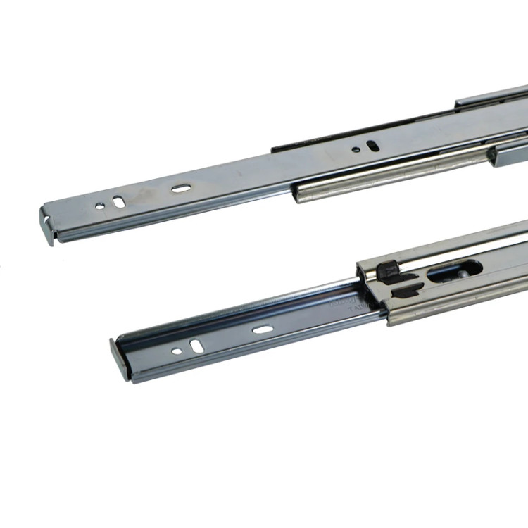 ریل ساچمه ای فیکس از سه بخش مجزا ساخته شده است که برای ایجاد حالت کشویی روی هم سوار شده اند. سه تکه بودن این محصول باعث میشود تا دسترسی به عمق کشو با راحتی بیشتری صورت بگیرد. از این رو این نوع ریل بیشتر در کشوهای بزرگ و عمیق به کار گرفته میشود